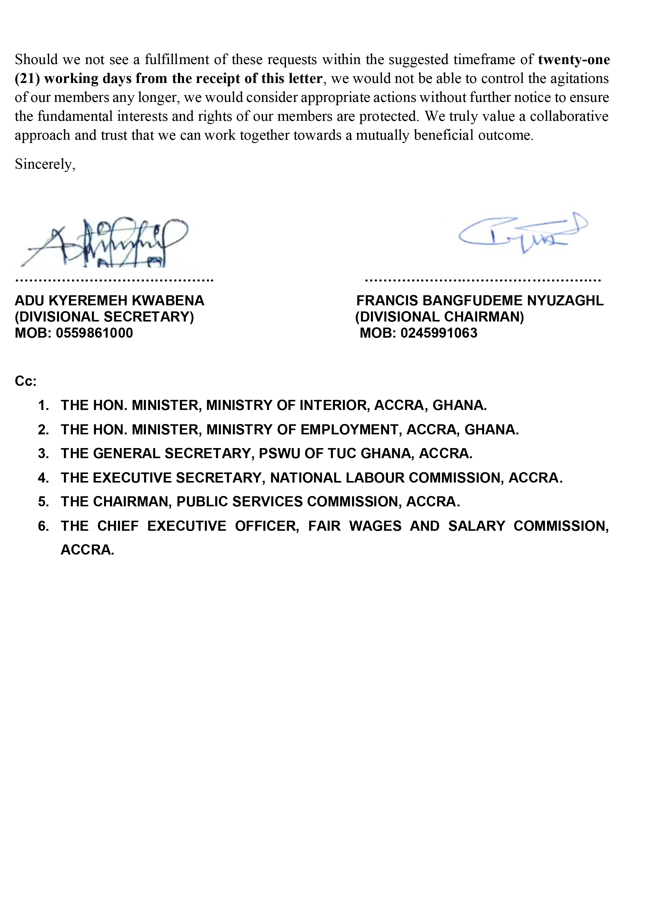 According to the intercepted letter, the PSWU is demanding urgent and comprehensive redress on the following critical issues affecting its members:
