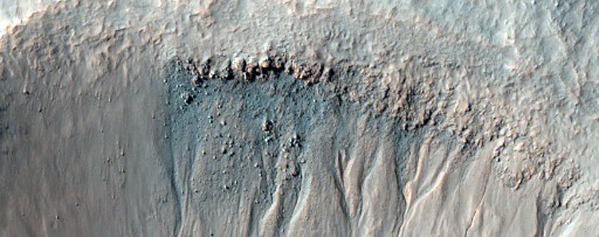 A crater on Arcadia Planitia, a big flat area of Mars: